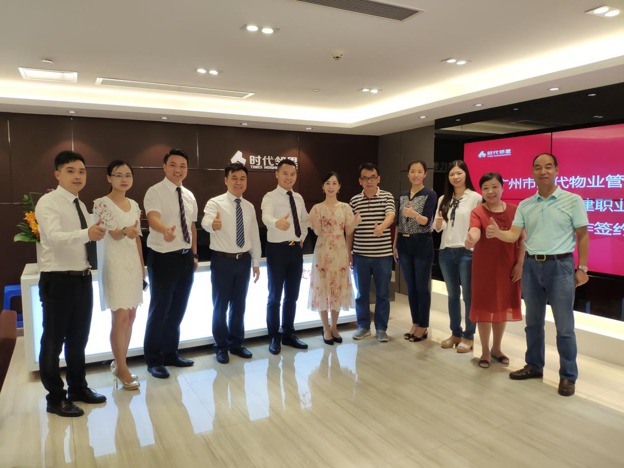 6月26日,经济与管理学院副院长张珊、工商企业管理教研室主任张耀星、副主任刘莎以及专任教师石倩文、齐豫红、李贵增一行前往广州市时代物业管理有限公司,洽谈校企合作相关事宜和举行签约挂牌仪式,受到时代物业东区公司总经理吴升良、人事行政管理中心总监吴伟超、人事行政部经理邱成淮等高管热情接待。