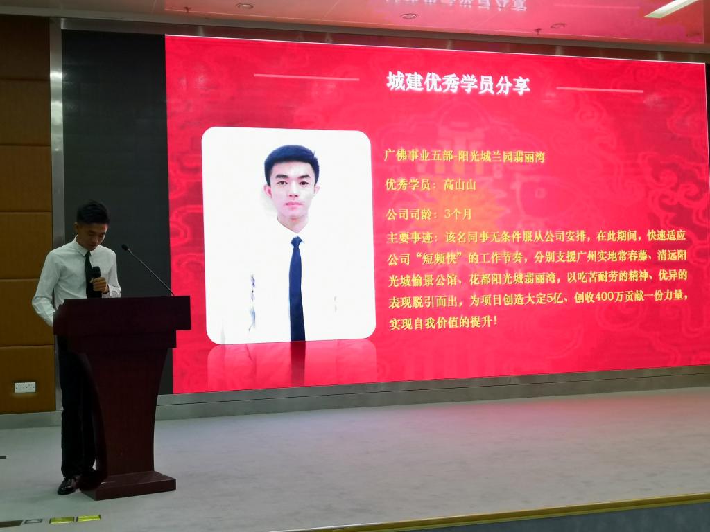 受表彰的2014届毕业生代表李冠鑫作了主题演讲。李冠鑫分享了自己从实习生到易居企业集团广佛事业二部营销副总监的完美晋级。“成为销冠要具备积极的心态、专业的知识和扎实的技巧,并为之付出实际的行动,希望师弟师妹们能珍惜在校的美好时光和学习资源,在踏入社会前磨炼好自己,把专业知识学扎实。”