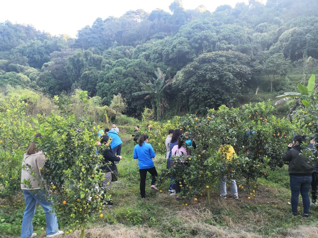 锦一村是从化区建设美丽乡村之桃花小镇的所在地,是开展社会主义新农村建设的一大试点。行程中,全体教职工感受乡村振兴战略实施带来的新农村变化,纷纷感慨这里风景秀丽,民风质朴。在到达水果生态农业基地后,一路上教师们边爬山边参观砂糖橘果园,工作人员针对砂糖橘的品种和生长发育为大家进行了详细解说。大家意趣盎然,十分热闹。有的以教研室为单位,有的三五好友相约,共度时光。大家或谈笑风生或交流生活工作心得,并不时合影留念。