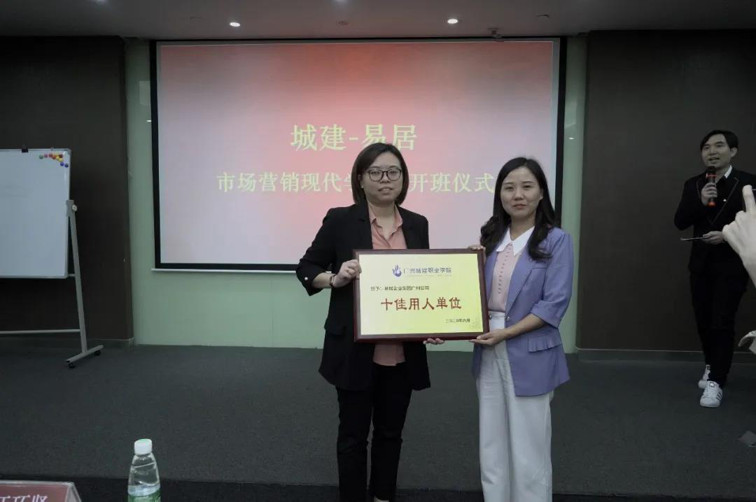 随后,沈华艳代表学院向易居企业集团广州公司授予“十佳用人单位”荣誉称号。