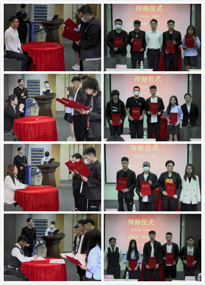 学生优秀代表及带班导师向同学们分享在易居的成长历程之后。拜师仪式正式开始,学徒班的同学向企业的带班导师递上拜师贴,从此将执弟子之礼,刻苦钻研,不负承诺。