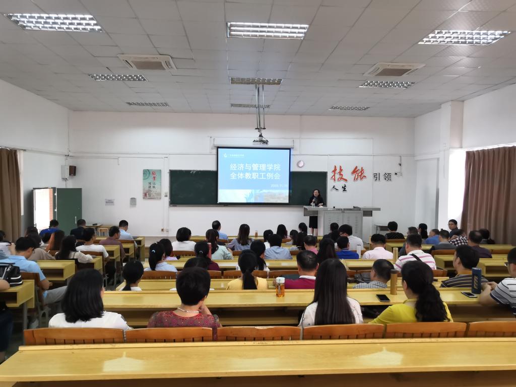 11月19日下午,经济与管理学院在人文艺术楼624教室组织召开11月教职工例会。副校长、经济与管理学院院长王媚莎,副校长杨清国、学院领导班子及全体教职工共计90余人出席会议,会议由王媚莎主持。