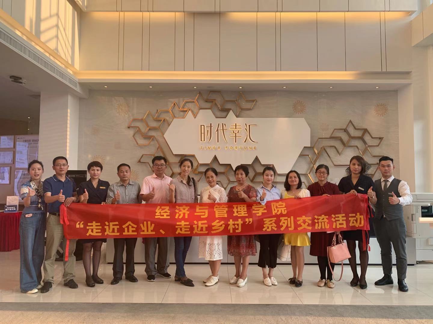 为进一步了解房地产行业发展与人才需求状况,谋求校企深度合作,11月19日,经济与管理学院工商企业管理教研室及教师党支部教师代表一行10人前往从化时代幸汇,积极开展“走进企业、走进乡村”交流活动。