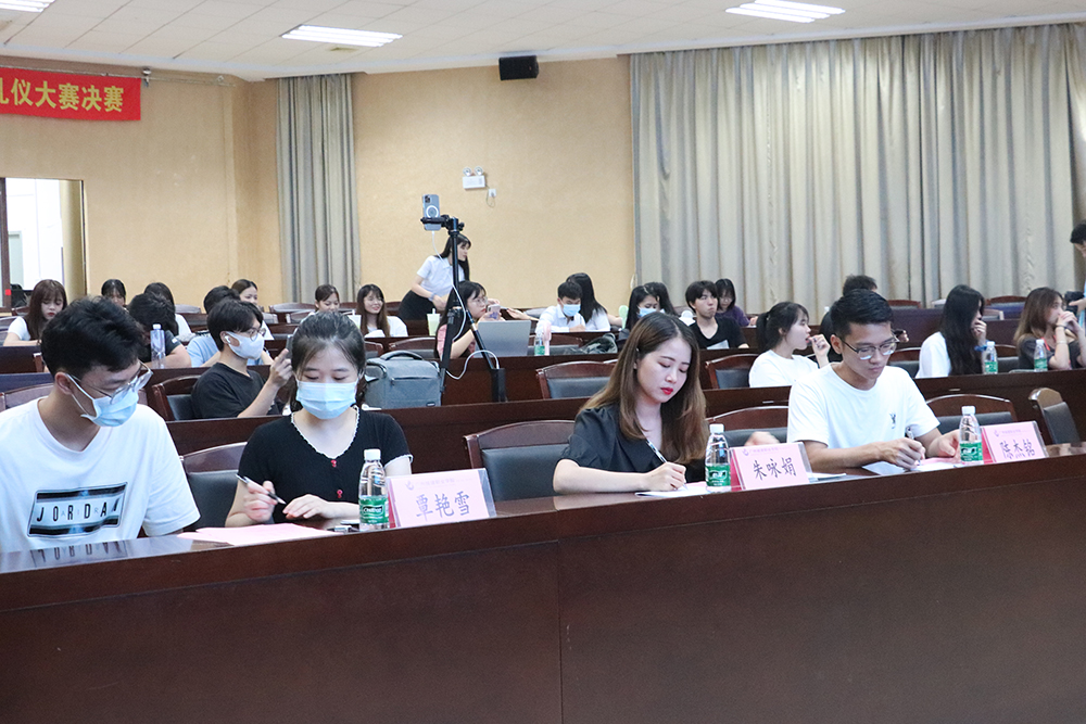为让学生了解和学习更多商务礼仪,提升学生的综合素质和就业竞争力,展现我校学生良好的文明礼仪风采。经济与管理学院于6月30日晚上19点在建工机电楼A101报告厅举行经济与管理学院第一届商务礼仪大赛决赛。担任本次决赛的评委嘉宾是学院团委书记朱咏娟、辅导员老师覃艳雪和陈杰铭,以及学校礼仪队队长钱淼霞同学。