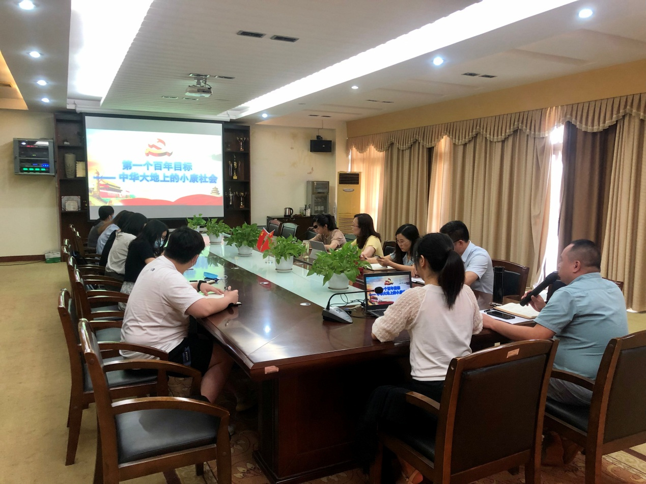 党委委员成惠慈同志带领大家学习主题为《第一个百年目标-中华大地上的小康社会》的内容,她从全面建成小康社会的发展历程,到全面建成小康社会的标准进行了阐述,并引用数据展示全面建成小康社会的伟大成就和历史意义。最后,她引用习近平总书记讲话中的“初心易得,始终难守”告诫广大教师要保持教育的初心,为培养国家栋梁献力。
