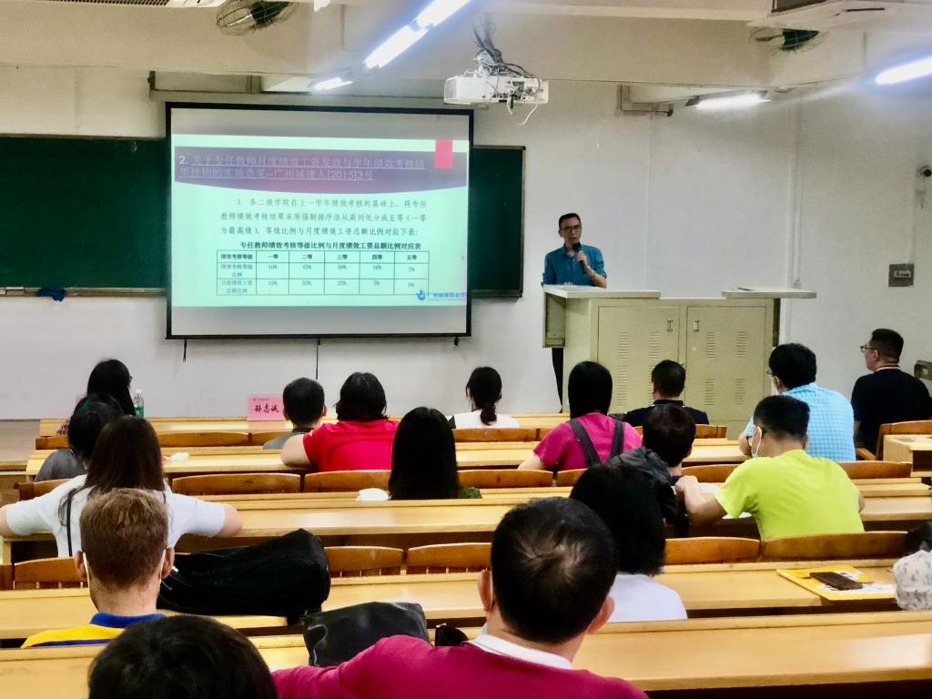 5月13日,由人事处(教师发展中心)组织的“送教”到二级学院活动在人文艺术楼526教室开展,经济与管理学院邀请人事处孙志诚处长、张惠芳老师开展学校人事制度专题培训活动,经管学院全体教职工参加,办公室主任陆伟林主持活动。