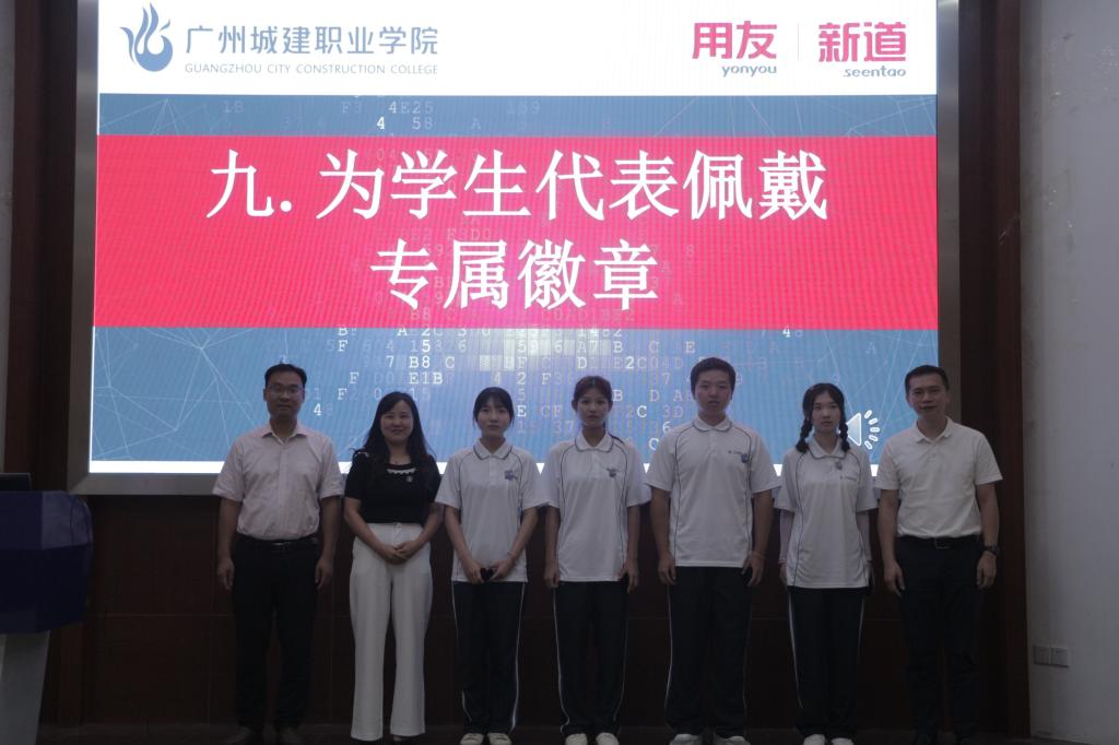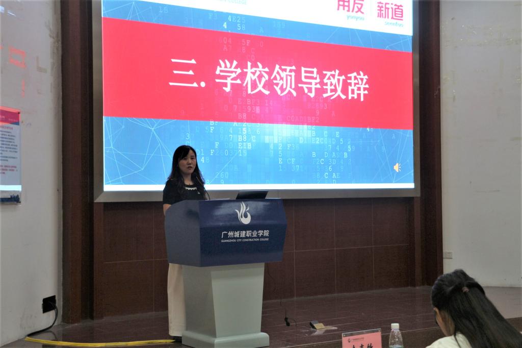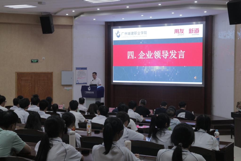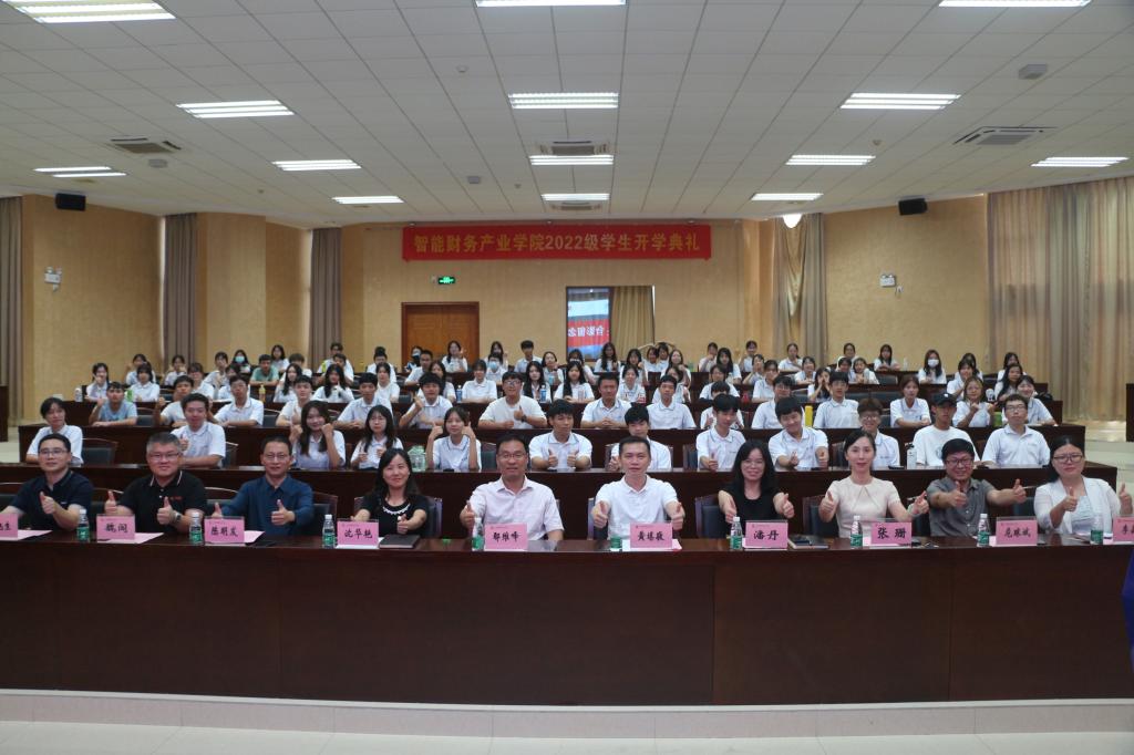 9月26日下午,广州城建职业学院与新道科技股份有限公司共同建设的智能财务产业学院2022级新生开班典礼在建工机电楼101报告厅举行。学校副校长鄢维峰,教务处副处长潘丹,经济与管理学院院长沈华艳,副院长陈明发、张珊,会计教研室主任陈旭生,辅导员戚景山,新道科技广东省区总经理黄堪敬、客户经理危球斌、服务总监魏闯及全体2022级智能财务班学生出席活动,活动由新道驻校导师李嘉敏主持。