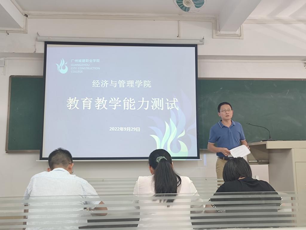 为做好2022年教师资格认定及新入职教师教育教学能力指导培训工作,9月29日下午,经济与管理学院于信工财经楼603教室举行2022年教育教学能力测试活动。学院邀请了两位院内、一位院外教学经验丰富的副高职称教师组成测试评委,共五位老师参与本次测试,学院办公室主任陆伟林出席测试活动,活动由教学副院长陈明发主持。