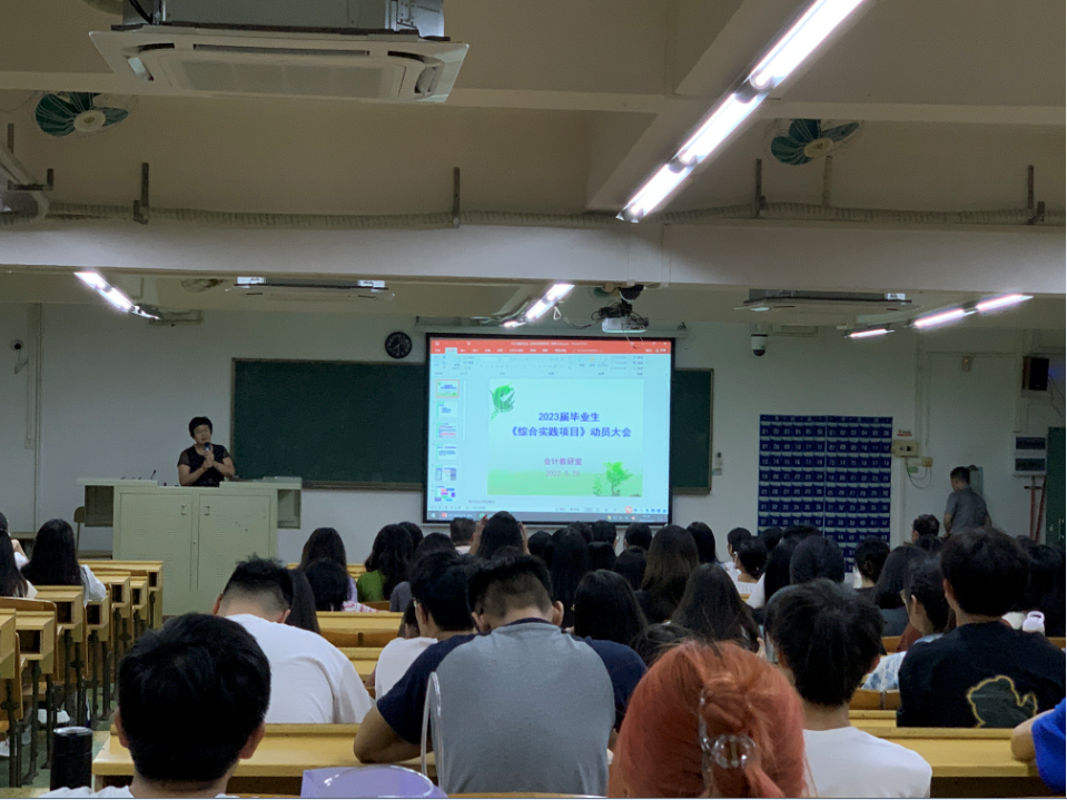 为进一步提高2023届毕业生对《综合实践项目》的认识和参与的积极性,了解综合实践项目工作的具体安排,9月28日-29日,经济与管理学院分8个专场召开了2023届毕业《综合实践项目》教学工作启动会。经济与管理学院院长沈华艳,党委书记、副院长欧志勇,副院长陈明发、张珊,办公室主任陆伟林,对各专场进行了巡视与旁听。每个专场由各专业教研室主任和副主任主持,所有指导老师及2023届全体毕业生参加了此次大会。
