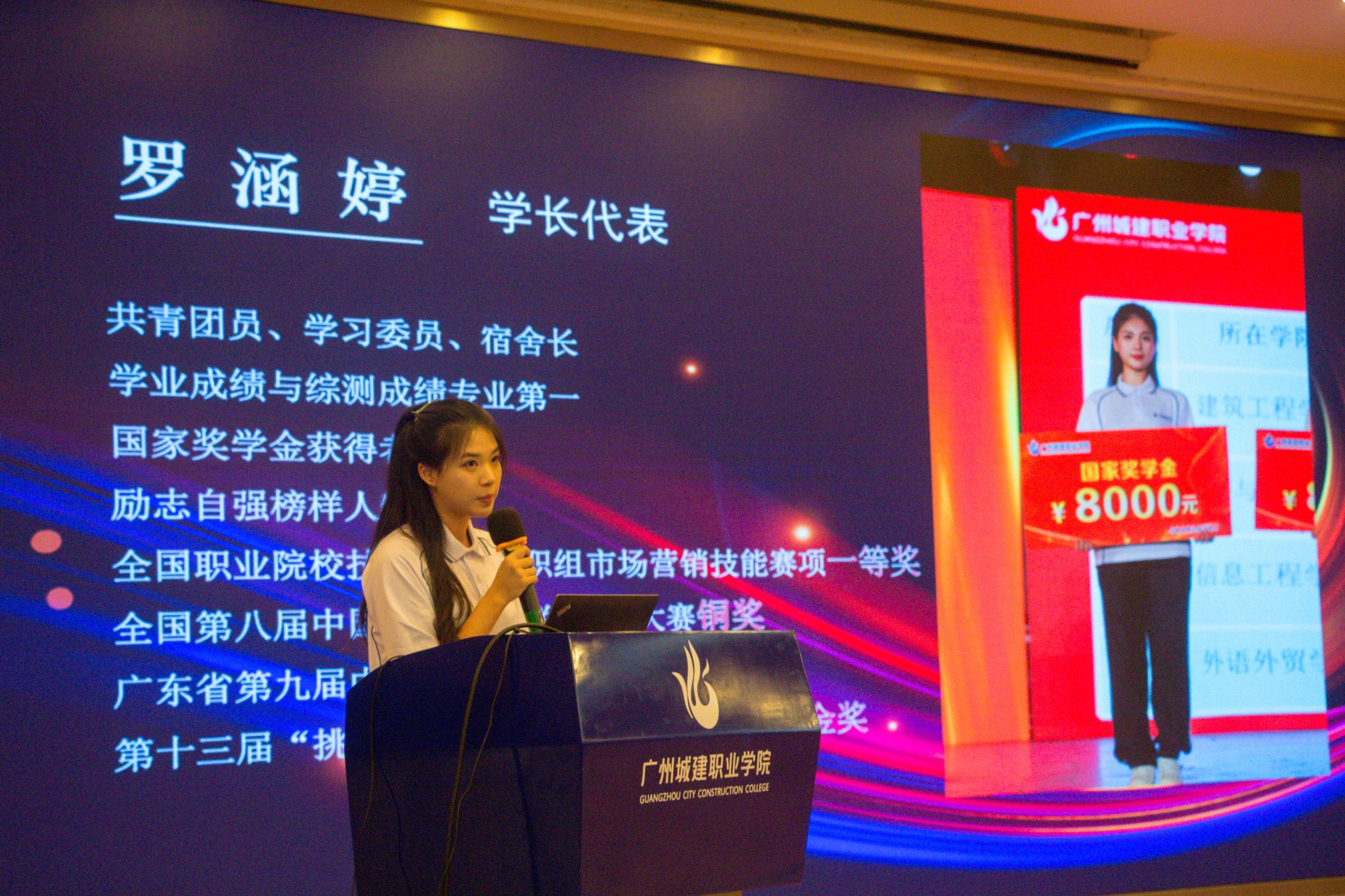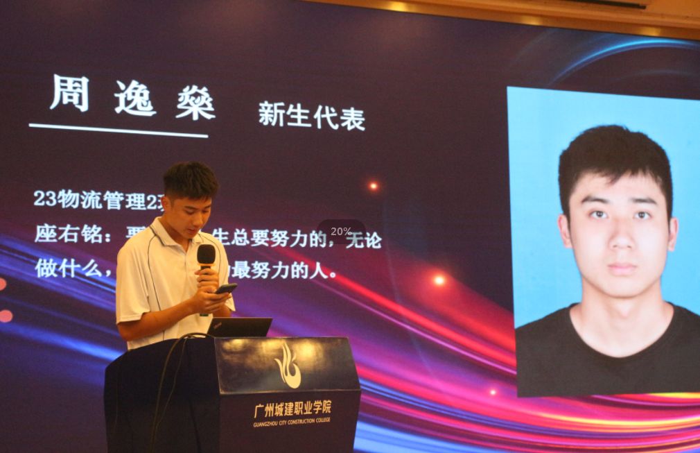 教师代表汪德露老师、学长代表21级市场营销专升本班罗涵婷同学和新生代表23级工商现代物流管理专业周逸燊同学分别上台发言,勉励新生不负青春、砥砺前行。