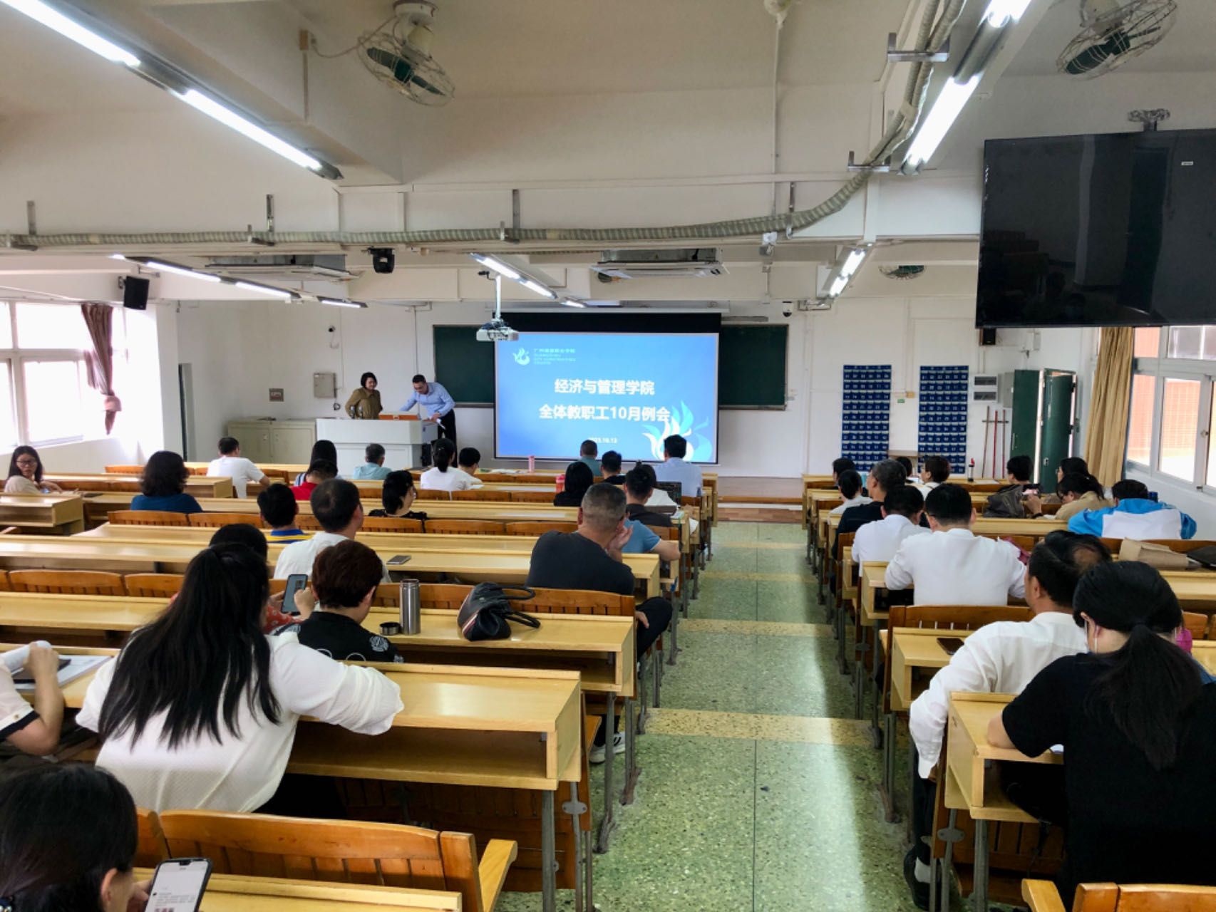 10月12日下午,经济与管理学院在人文艺术楼505教室召开了全体教职工例会。经济与管理学院党委书记、副院长欧志勇,副院长刘静及全体教职工参加会议,会议由办公室主任陆伟林主持。