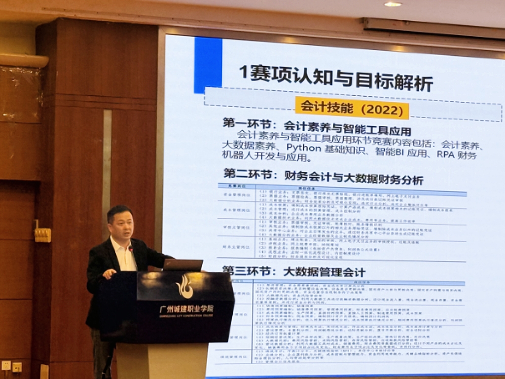 成功的背后,离不开指导老师们的辛勤耕耘。省职业院校技能大赛会计实务赛项一等奖指导老师尹峰作为优秀指导老师代表,分享了他的带队经验与心法。从团队组建、训练方法到心态调整,尹老师无私的分享为在座的老师们提供了宝贵的借鉴,也让同学们深刻体会到“良师引路”的重要性。