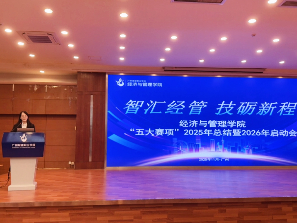 秋意渐浓,热情不减。11月12日晚,经济与管理学院“五大赛项”2025年总结暨2026年启动大会在人文艺术楼四楼报告厅隆重举行。学院院长沈华艳,党委书记、副院长欧志勇,副院长刘静、张珊,全体教职工及学生代表参会。大会由经济与管理学院杨倩老师主持。