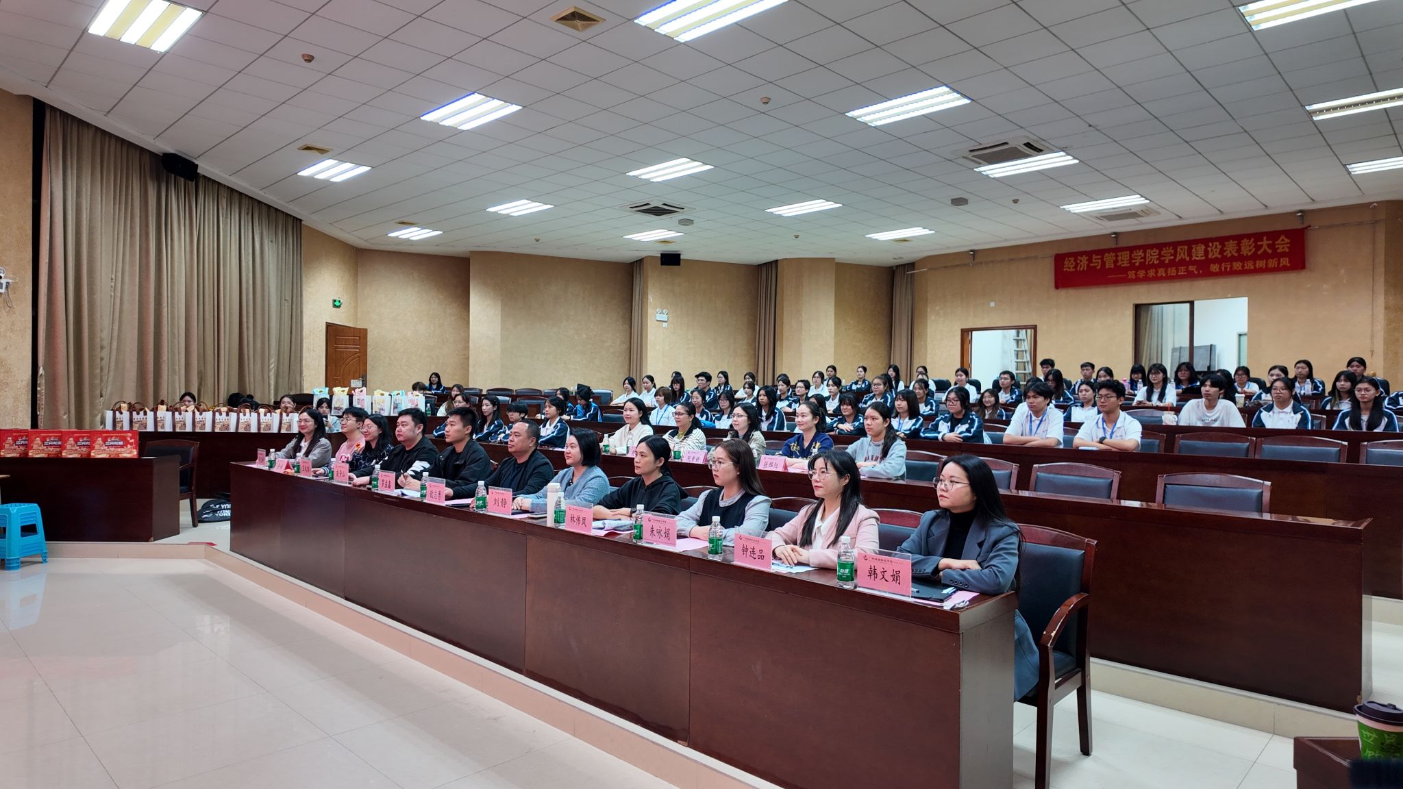 为深化一站式学生社区建设,表彰先进典型,营造整洁和谐、互助友爱的宿舍氛围,12月24日晚,经济与管理学院文明宿舍表彰大会在建工机电楼101顺利召开。学院党委书记、副院长欧志勇,教学副院长刘静,全体辅导员及学生代表齐聚现场,共同见证文明宿舍的风采与荣光。