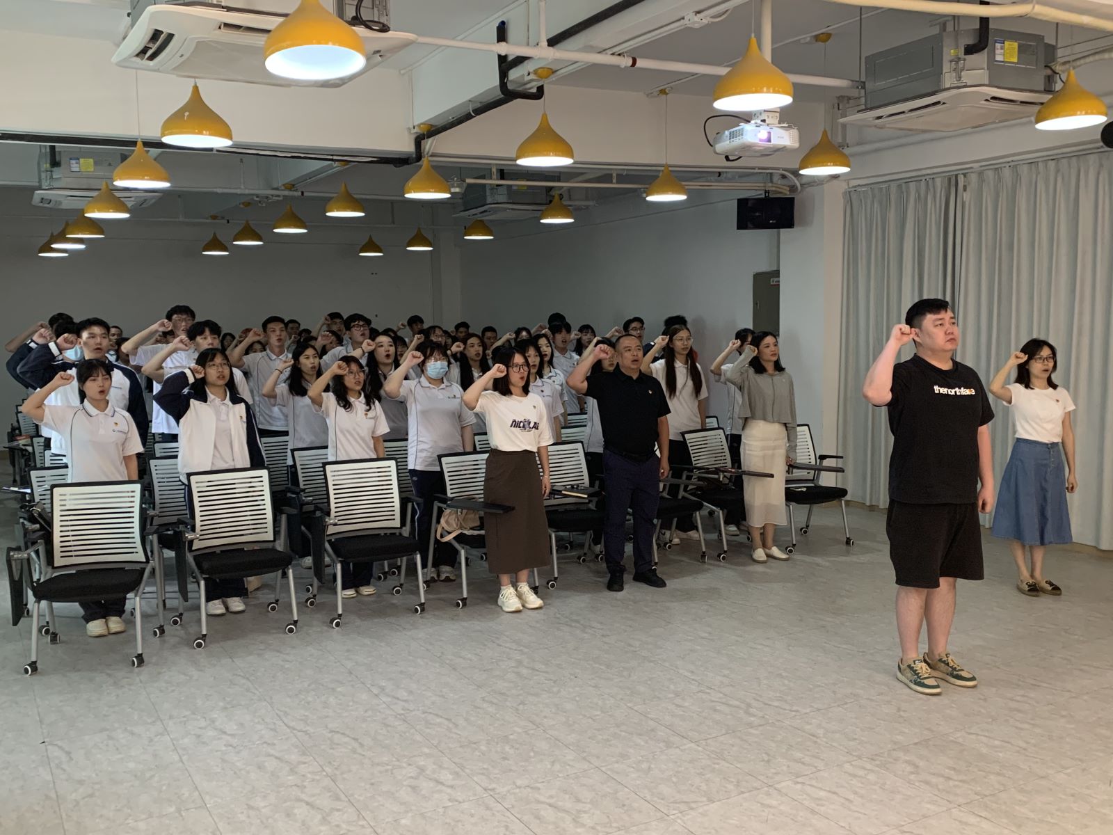 大会接近尾声,各支部书记为毕业生党员同志赠予学院纪念品并合影留念。在党支部书记戚景山的领誓下,全体党员同志重温了入党誓词,让入党初心常念常新,让入党使命常履常行。