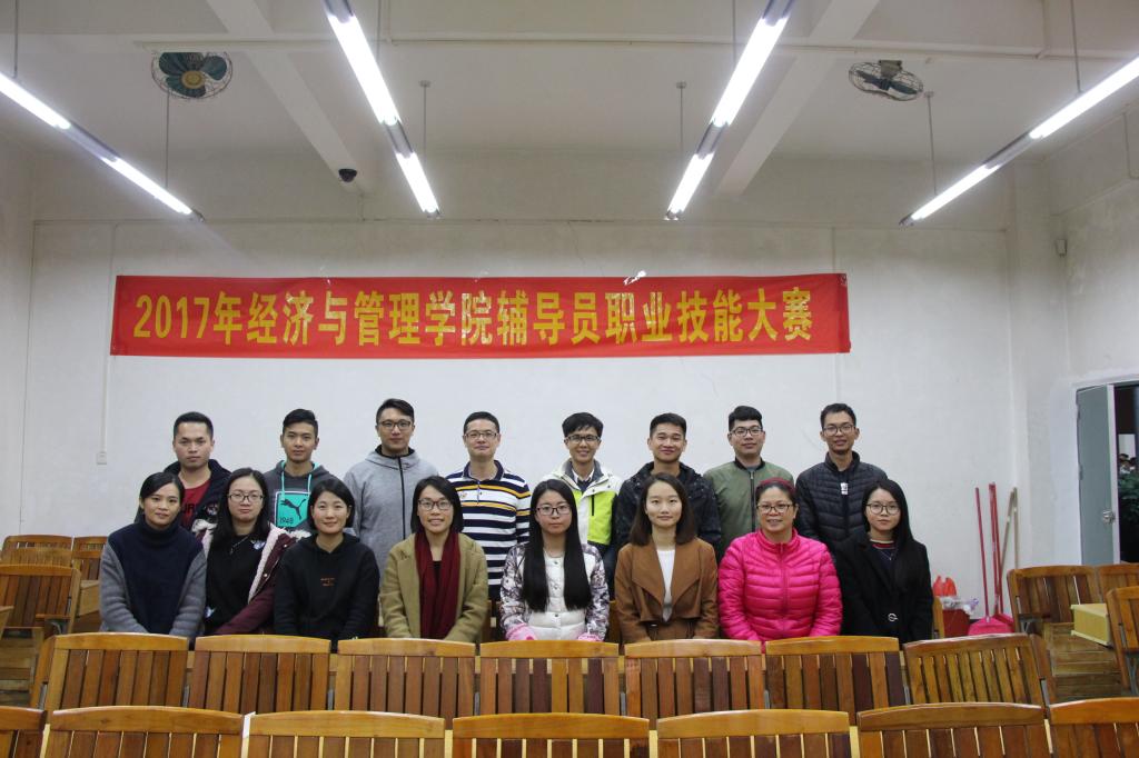 为深入贯彻习近平总书记系列重要讲话精神,落实《中共中央国务院关于进一步加强和改进大学生思想政治教育的意见》、《高等学校辅导员职业能力标准(暂行)》,进一步增强辅导员职业技能,提升辅导员育人能力,根据学校学生处的相关要求,经济与管理学院于2017年11月24日下午,在人文艺术楼121隆重举办辅导员职业能力大赛,全院共有13名辅导员老师参赛。