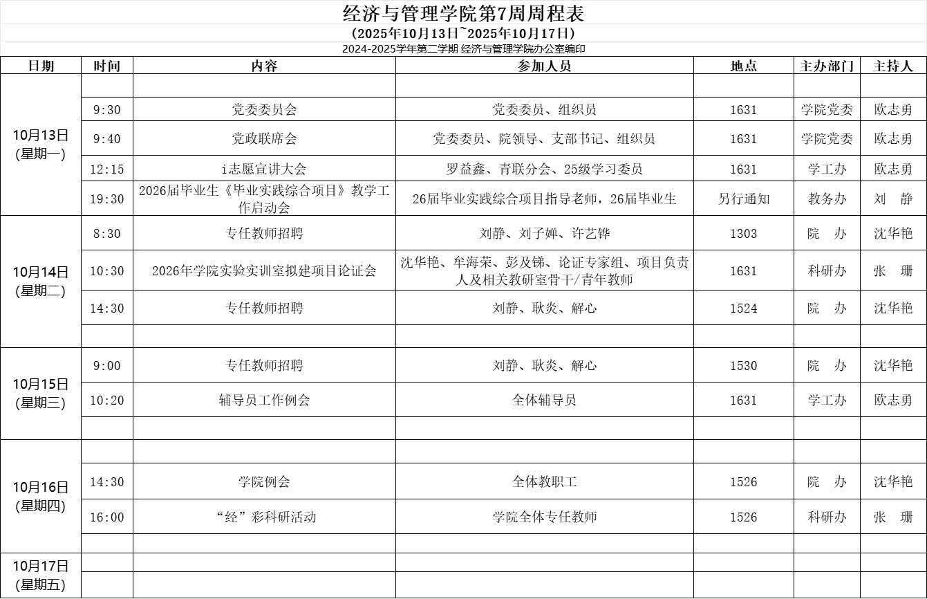 【2025-2026-1】经济与管理学院第6周周程表