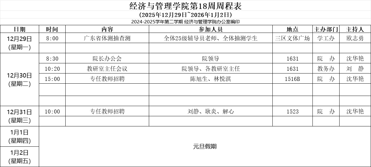 【2025-2026-1】经济与管理学院第18周周程表