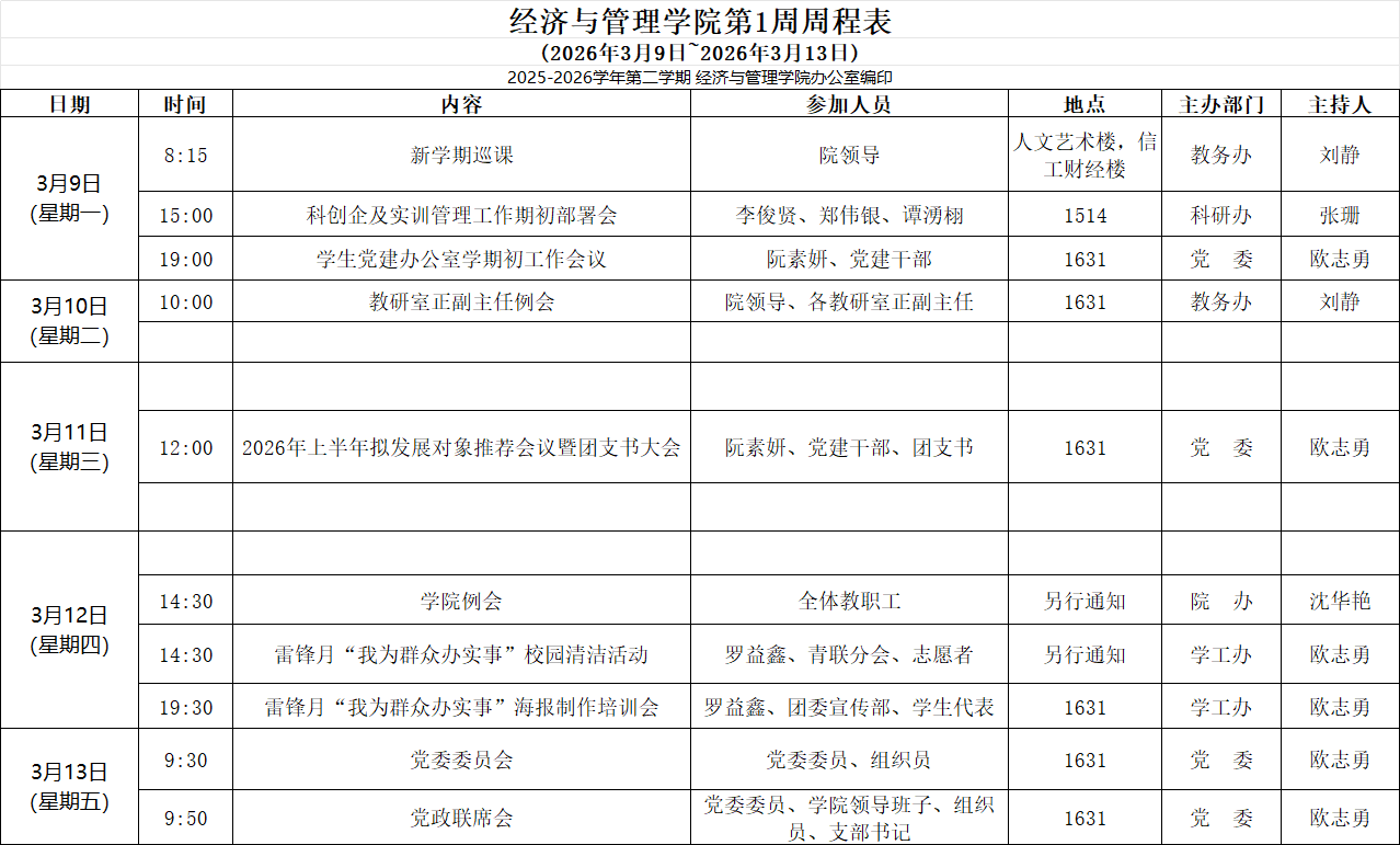 【2025-2026-2】经济与管理学院第1周周程表